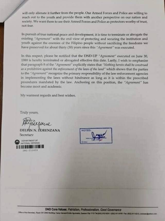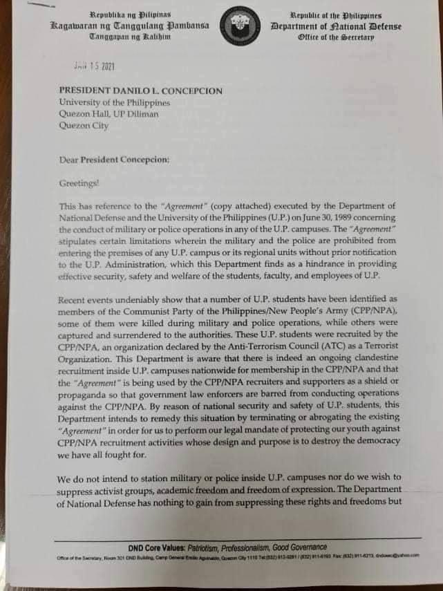 Under the fascist law of state terrorism, the military and national police can now on their arbitrary judgment and on orders of the Anti-Terrorism Council and NTF-Elcac tag faculty members and students in the University of the Philippines as “communist terrorists” and “terrorist recruiters”, abduct them upon planting of CPP and NPA publications, guns and explosives and violently break up classes, convocations and public assemblies as “communist recruitment sessions”.