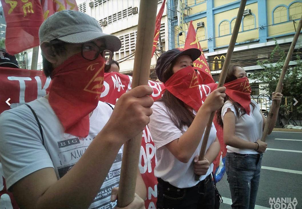 Saying Duterte’s revolutionary government is a hoax, the masked youth participants called for socialism and participation of the youth in the people’s revolution in the countryside for a new society to be birthed.