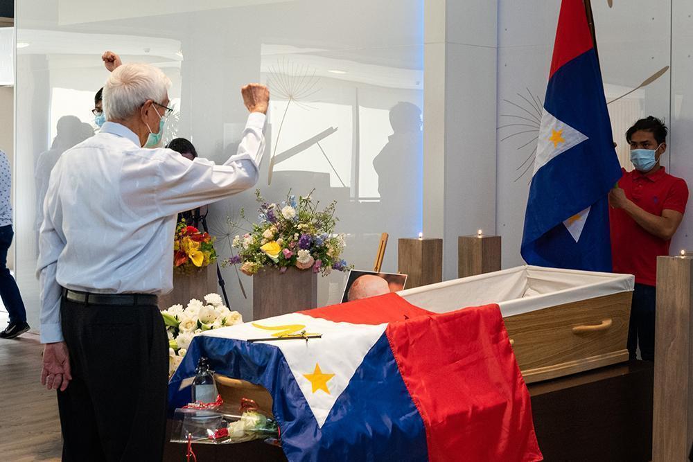 NDFP Senior Adviser Luis Jalandoni gives Agcaoili a last militant salute. (Photo by Nwel Saturay/Kodao)