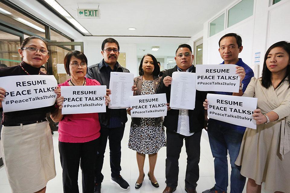 At least 22 party-list representatives and 40 district representatives signed House Resolution 1803 on March 22, urging President Rodrigo R. Duterte to return to the peace table with the communist group and continue discussions on Comprehensive Agreement on Social and Economic Reforms (CASER), dubbed as the “heart and soul” of the peace talks, and Comprehensive Agreement on Political Reforms (CAPCR)