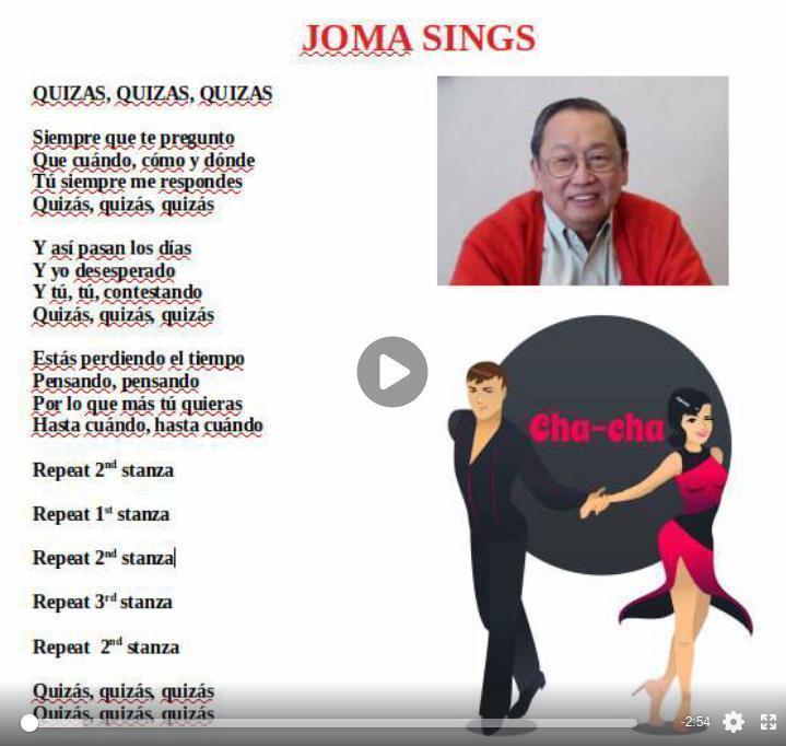 For your amusement during the Covid-19 lockdown. Click on the link below to listen to Joma sing. El pueblo unido jamás será vencido
