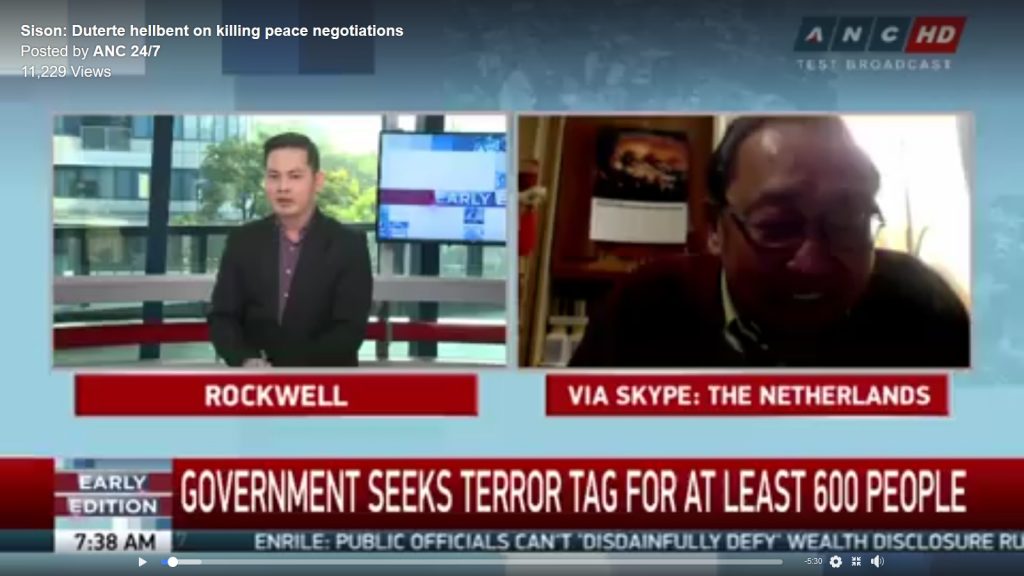 CPP Founder Joma Sison says it seems that Duterte is hellbent on killing the peace negotiations.