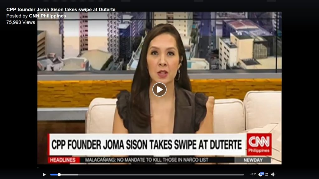The founder of the Communist Party of the Philippines is accusing President Rodrigo Duterte of being the biggest protector of the illegal drugs trade in the country. www,cnn.ph/2KOW6tl