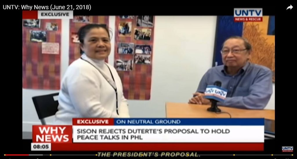 Naniniwala si CPP Founder Joma Sison na dapat ay sa ibang bansa gawin ang peace talks alinsunod sa nakasaad sa Joint Agreement on Safety and Immunity Guarantee (JASIG)