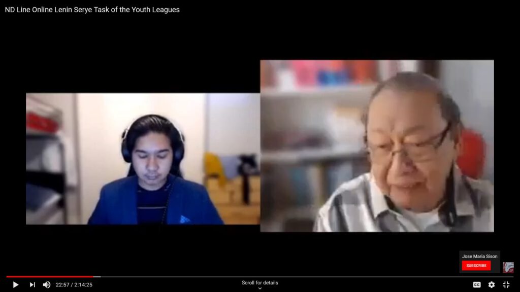 Prof. Jose Maria Sison giving lecture at Belgian Youth Camp